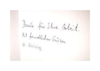 Dear Mr. Gallobitsch! The settlement from the inheritance of the estate of my aunt, [anonymized], has arrived. Thank you for your efforts in this matter. If I am ever in Klagenfurt, I shall buy the beer. Sincerely,